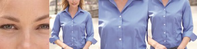 A pared-down corporate look with stylish ¾ sleeves and wrinkle-free wearbility.
