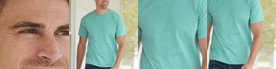- 5.5 oz., 100% combed ringspun cotton jersey (Heathers 97/3), 22 singles