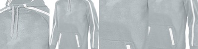 9 ounce 60% cotton/40% polyester athletic fleece ; Jersey-lined hood; Set-in sleeves ; Front pouch pocket ; Rib-knit cuffs and bottom band; No drawcords;