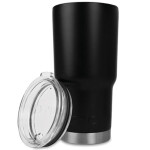 - Features a sweat-free design and thumb-slide, screw-on lid