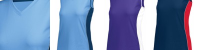 100% polyester wicking smooth knit with true hue technology™ that helps prevent dye migration; 100% polyester propelit micromesh wicking knit inserts; Wicking smooth knit with true hue technology™ that helps prevent dye migration; Wicks moisture; Odor resistant; Ladies' fit ; Pad print label ; V-neck collar ;