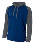 8.3 oz., 80% ringspun cotton, 20% polyester midweight fabric; Soft cotton faced fabric creates ideal printing surface; Twin needle stitching detailing; Contrast raglan sleeves; Double fabric hood; Contrast flat lace drawcords; Small hidden opening for earphone cord feed inside pouch pouch pocket; Hidden earphone loops inside collar; Ribbed cuff and hem; Simple tear-away label makes it perfect for rebranding;