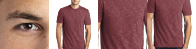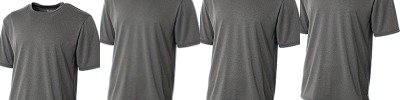 100% polyester heather tee, 4.2 oz. per square yard; Odor resistant and stain release fabric for easy care; Moisture management for all season comfort; Neck seam cover-stitched for extra durability; Tag-free neck;
