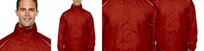 Water-repellent finishá; 96% polyester 4% spandex, 7.5 oz./yd2/255 gsm; Bonded w/100% polyester fleece; inside storm placket with fleece chin guard; center front reverse coil autolock zipper with reflective toggle; lower front reverse coil zippered pockets with reflective toggles; audioport access through inside left pocket;
