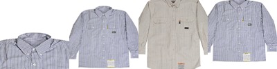 7 oz., 100% flame resistant twill; Meets the requirements of ASTM F1506, NFPA 70E, NFPA2112, and OSHA 1910.269; Button front; Pockets with flaps and button closures; Pencil slot on left pocket; Triple-needle stitched main seams; Adjustable button cuffs;