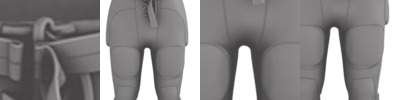 - left exterior breast pocket, two lower exterior pockets