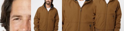 10 oz., super-duty 100% cotton duck; Medium-weight quilt lined taffeta; Water-repellent finish; Full-length heavy-duty brass zipper; Triple-needle stitched main seams; Double inside chest pockets; Insulated "High Back" design;