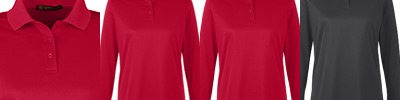 5 oz./yd2 / 172 gsm, 100% polyester face plaited to 60% polyester, 40% cotton back (total overall garment 61% polyester, 39% cotton); Proprietary dual-sided mesh pique knit constructed of fine denier wicking polyester on the outside and soft-as-cotton wicking blend on the inside; Moisture-wicking performance with UV 15-39 protection; Matching flat-knit collar with contrast double tipping; Side vents; Active fit; Easy care;