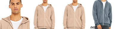 8 oz., 32 singles; 52% Airlume combed and ring-spun cotton, 48% poly fleece; Atletic heather: 90% Airlume combed, ring-spun cotton, 10% poly fleece; This full-zip hoodie is a year-round essential; Innovative sueded fleece provides exceptional soft feel; Cozy, easy-to-layer, fashion-forward look; Two-tone ribbing; Front pockets; Tear away label;