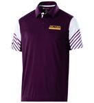 Dry-Excel(tm) 3.4 ounce 100% polyester with high mechanical stretch * Dry-Excel(tm) 4.1 ounce 100% wicking polyester grid mesh back * Sublimated sleeve print * Wicks moisture * Tagless label * Self-fabric collar * Three matching buttons * Contrast color sublimated sleeve print * Set-in sleeves