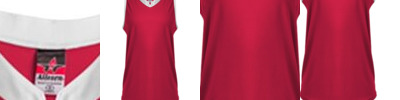 92% polyester/8% spandex (white) * 92% nylon/8% spandex (color) * Dri-Power(r) Moisture Wicking Technology * Ladies' fit * Updated tailored fit * Tag-free label * Outside locker label * V-neck collar * Contrast color inserts * Racerback styling * Designed to be NFHS compliant
