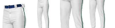 14 oz 100% 2-way stretch warp knit polyester stain and odor resistant youth pant; Contrast side seam piping; Double-layer knee construction; Two welted back pockets; Metal zipper fly with two snap waistband; Full tunnel belt loops and elastic cuffs; Moisture wicking, odor resistant, stain release;