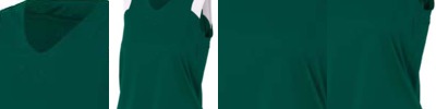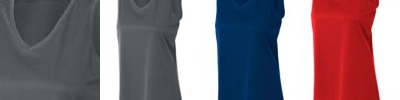 100% polyester interlock stain and odor resistant muscle tee; Ultra tight knit resists snagging; Self fabric v-neck collar; Contrasting white shoulder panel; Moisture wicking, odor resistant and stain release ;