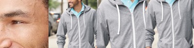 - Triple-needle coverstitching on hood, neck, armholes, pocket openings, cuffs and waistband